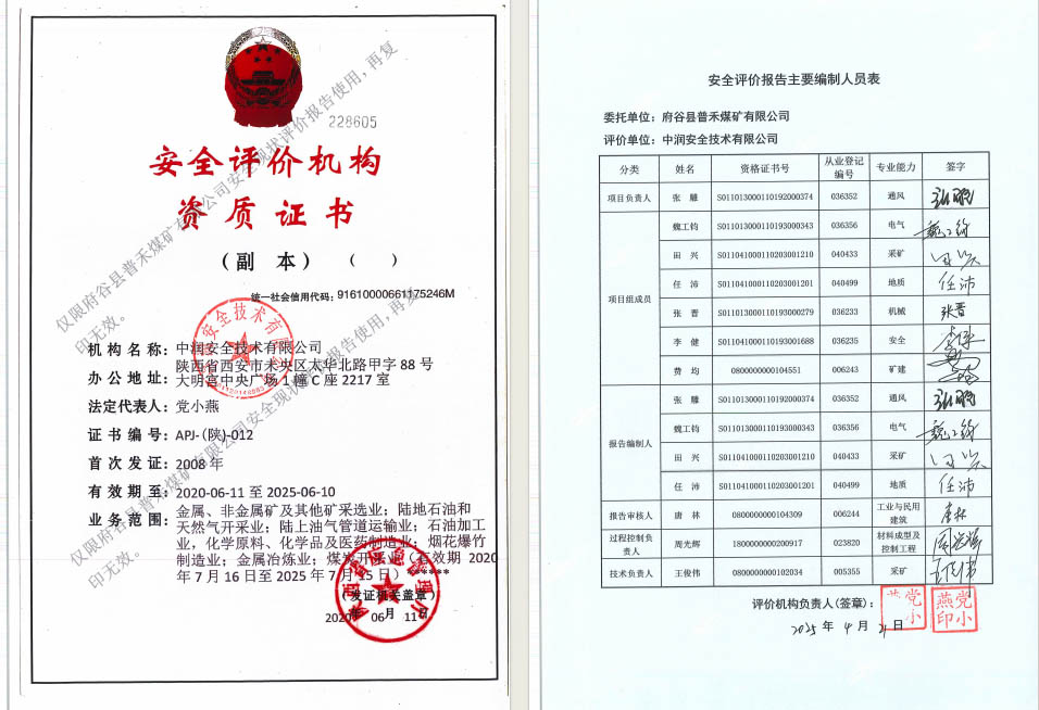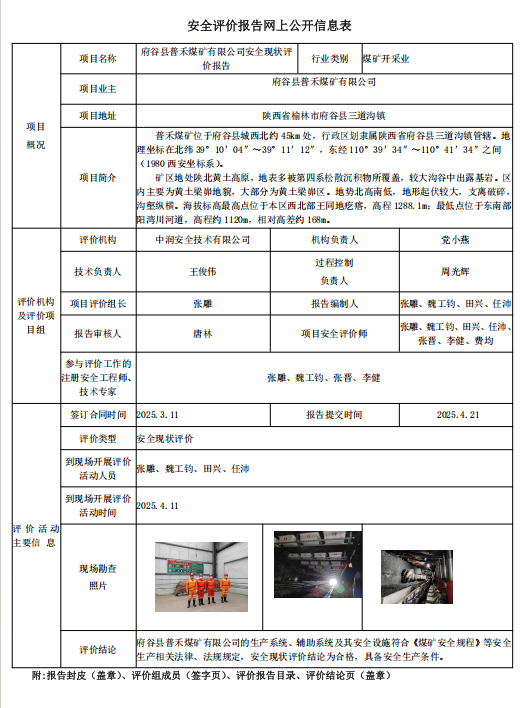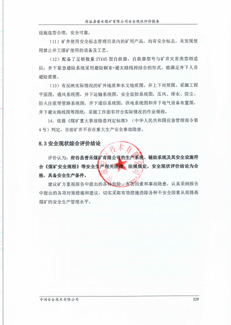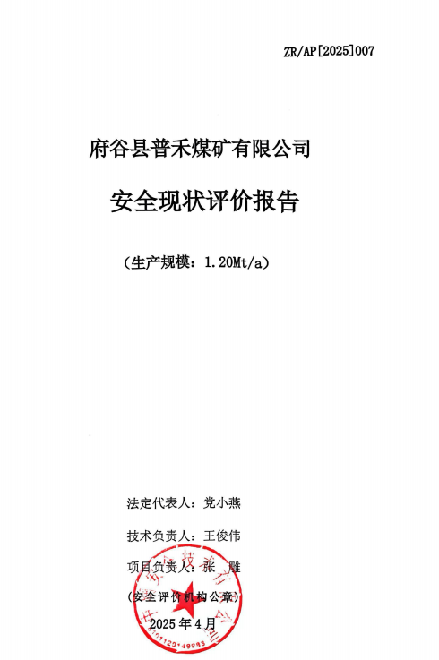 府谷縣普禾煤礦有限公司安全現(xiàn)狀評價報告
